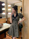 Bow Puffed Sleeves Plaid Dress$29.99